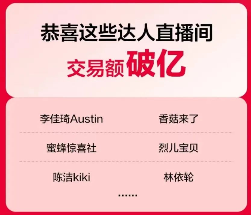 不過,上述數(shù)據并未得到平臺官方確認。在淘寶直播官方發(fā)布的戰(zhàn)報中,并未公布李佳琦直播間的具體GMV,只是低調把其歸于“破億直播間”。