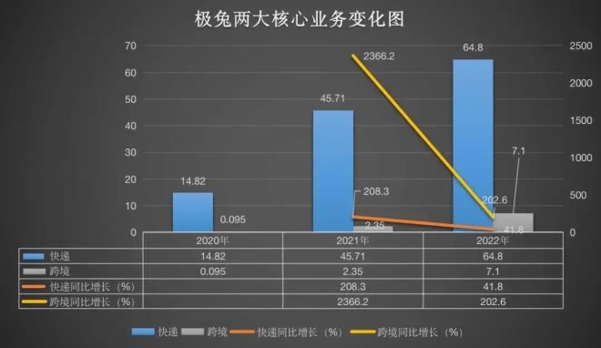 最近三年,也就是疫情這三年,極兔收入暴增,翻了近4倍。