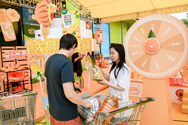 值此“山茶柑柑好”風(fēng)味茶飲上市之際,永輝自有品牌饞大獅夏季新品發(fā)布會(huì)在北京順利舉辦,活動(dòng)期間,饞大獅重磅發(fā)布了兩款夏季新品——饞大獅山茶柑柑好茶飲料和饞大獅榴芒奶蓋沙琪瑪,通過不同口味組合,創(chuàng)造出更新奇的口感體驗(yàn),喚醒消費(fèi)者的味蕾。