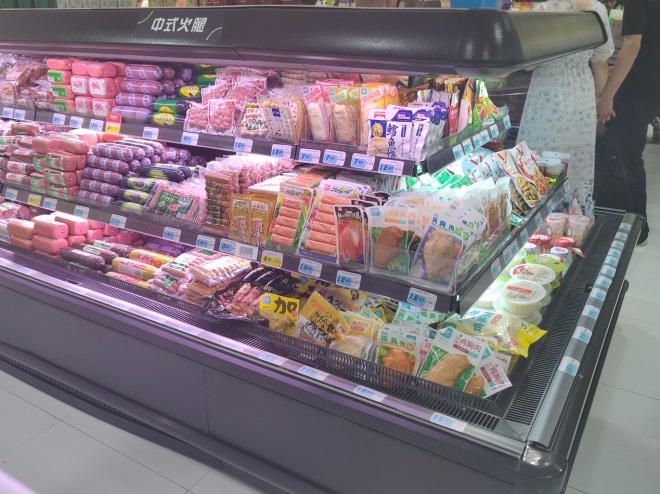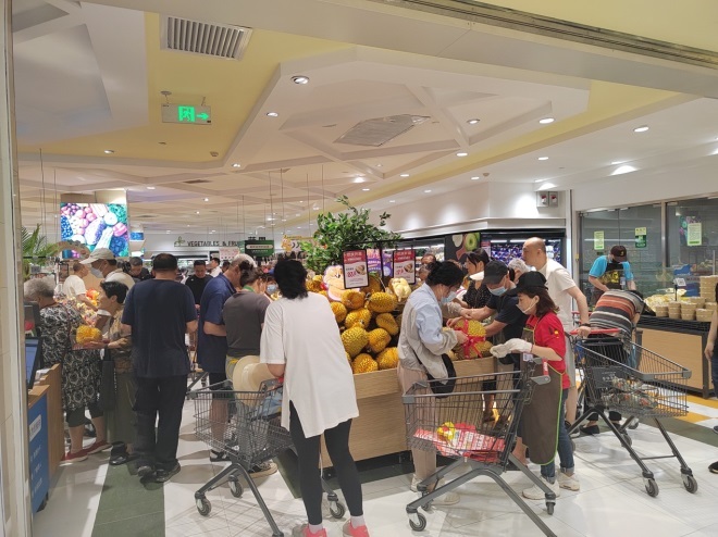 門店特色商品RT100近70個(gè)品類,包括大黃魚、臺(tái)灣風(fēng)味腸、核桃糕、瑞士卷、云朵麻薯、呷無忌小青檸、薈尚大米等。此外,店內(nèi)也設(shè)置了適合健身人士的低脂健康區(qū),售賣低脂雞胸肉、輕鹽肉制品、0糖0脂氣泡水等超130 種健康美食,另外也有長春當(dāng)?shù)刂放起┰屡H馊腭v。開業(yè)第一天上新爆款商品深海捕撈空運(yùn)直達(dá)的波士頓龍蝦,回購率超高的哈了個(gè)蜜,香甜可口的泰國金枕榴蓮。