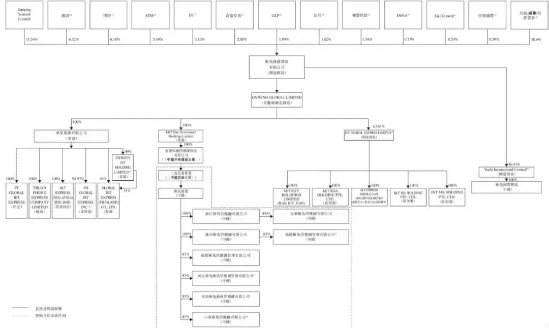 根據(jù)招股書顯示,極兔董事會主席兼CEO李杰透過Jumping Summit Limited持有極兔發(fā)行及流通股數(shù)總數(shù)的約11.54%,能行使極兔超7成投票權(quán)。