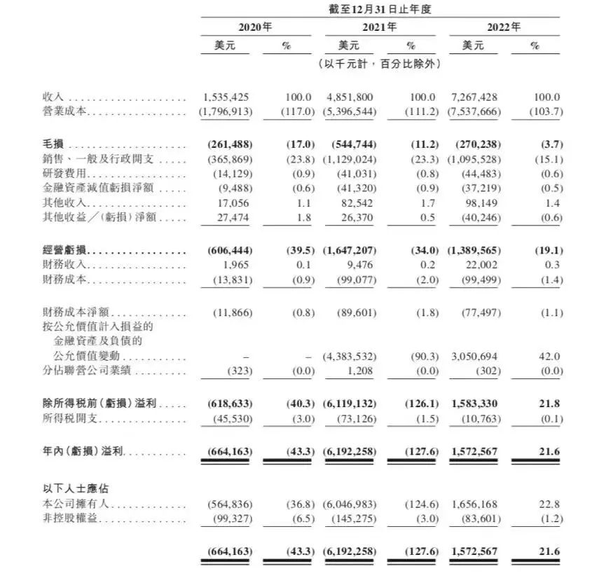 根據(jù)極兔招股書顯示,2020年到2022年極兔的營收分別為15.35億美元、48.52億美元、72.67億美元。2020 年、2021 年和 2022 年營收的同比增速分別為 357.7%、216% 和 49.8%。