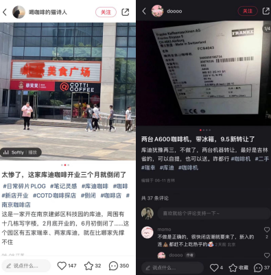 最近,不少庫迪加盟商在抖音、小紅書等社交平臺(tái)“訴苦”,有的“開三個(gè)月就虧損倒閉”,有的更是就地開始轉(zhuǎn)讓咖啡機(jī),希望能回點(diǎn)血。