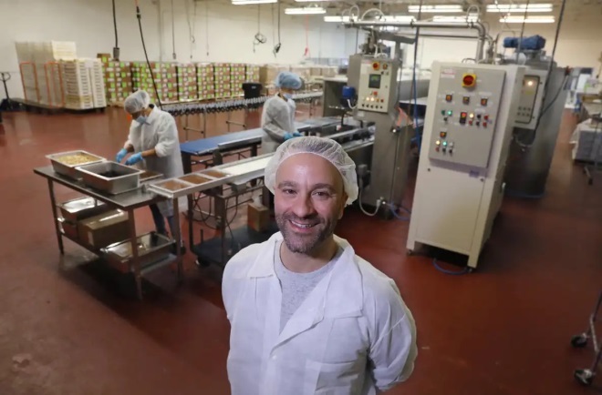 2023年1月,亞歷克斯·維格內里站在工廠車間里,視察韋格曼斯巧克力的生產(chǎn)流程。圖源:Democrat&Chronicle