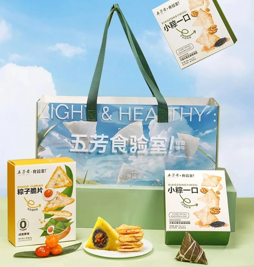 粽子界的龍頭老大“五芳齋”今年則聯(lián)合“食驗室”推出了“輕盈端午禮盒”,除了讓粽子“瘦身”到50克左右,還用大黃米替代了傳統(tǒng)的糯米。