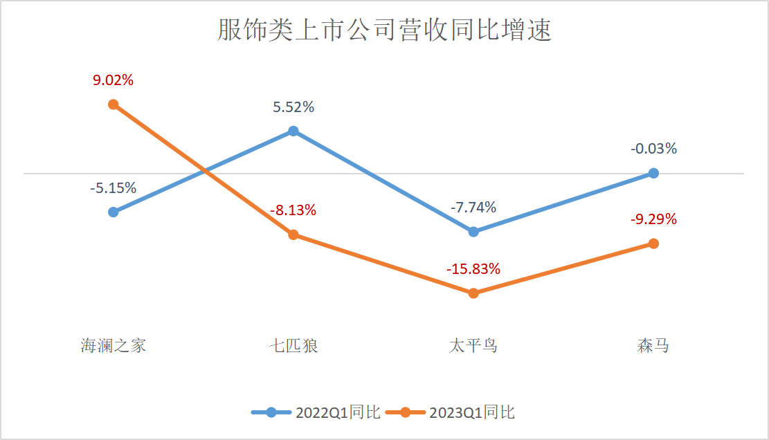 服飾類上市公司營收同比增速(數(shù)據(jù)來源:上市公司財(cái)報(bào))