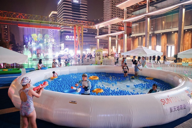 作為國家級夜間文旅消費集聚區(qū),新天地活力Park在四周年慶之際,打造大型戶外玩水派對,“街區(qū)+MALL”多點爆發(fā),晝夜分時段狂歡的形式,為消費者呈現(xiàn)“不止于夜晚”的潮玩體驗。