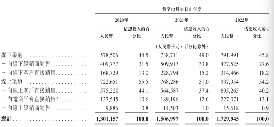截至2022底,燕之屋建立了由89家自營門店,及225名線下經(jīng)銷商涵蓋615家經(jīng)銷商門店的線下銷售網(wǎng)絡(luò)。報告期內(nèi),燕之屋線下收入占比分別為44.5%、49.0%、45.8%。