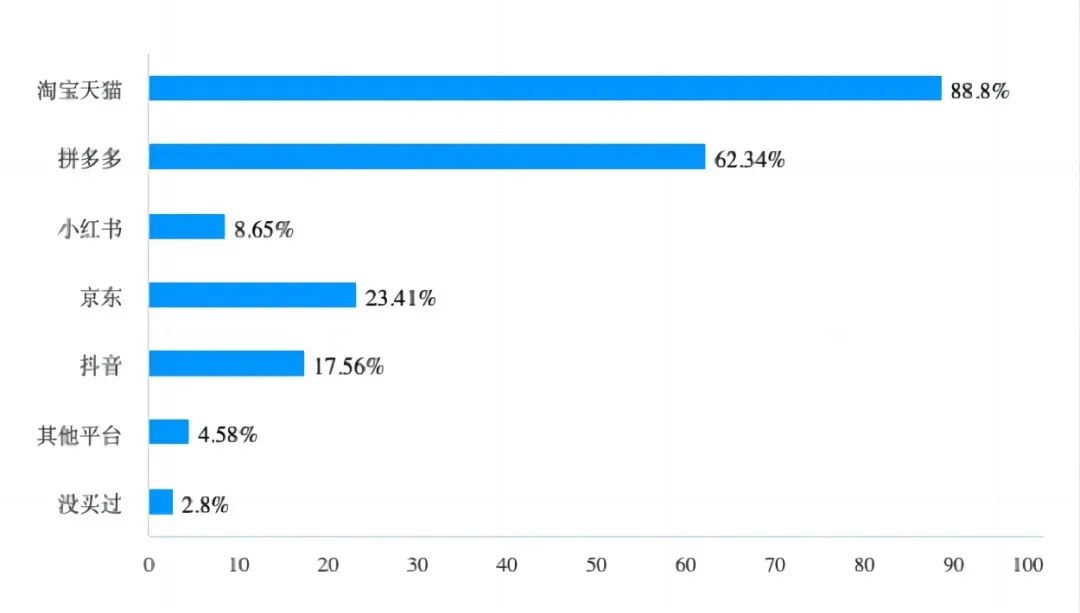 這一結(jié)果與前述平臺(tái)選擇問題一致,可見淘寶天貓仍是用戶線上消費(fèi)購物的首選平臺(tái),地位尚未動(dòng)搖。而用戶消費(fèi)習(xí)慣和消費(fèi)粘性,大大影響了其在平臺(tái)的消費(fèi)力。