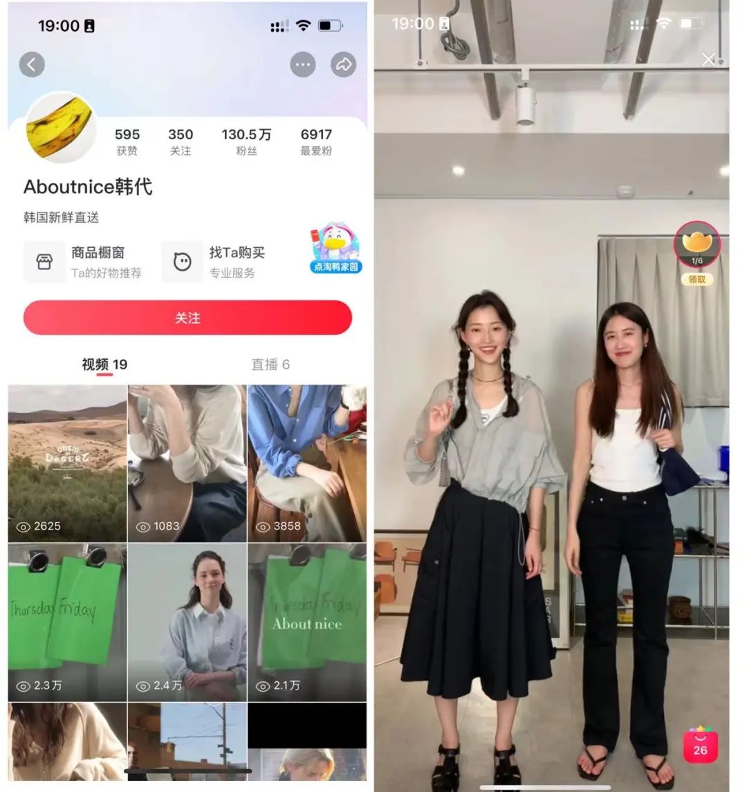 aboutnice韓代的直播間和其他代購(gòu)賬號(hào)不太一樣的是,他們鏡頭前是兩位韓國(guó)模特試衣服,全程不說(shuō)話,也不會(huì)中文,都是鏡頭后的賬號(hào)主理人在講品。