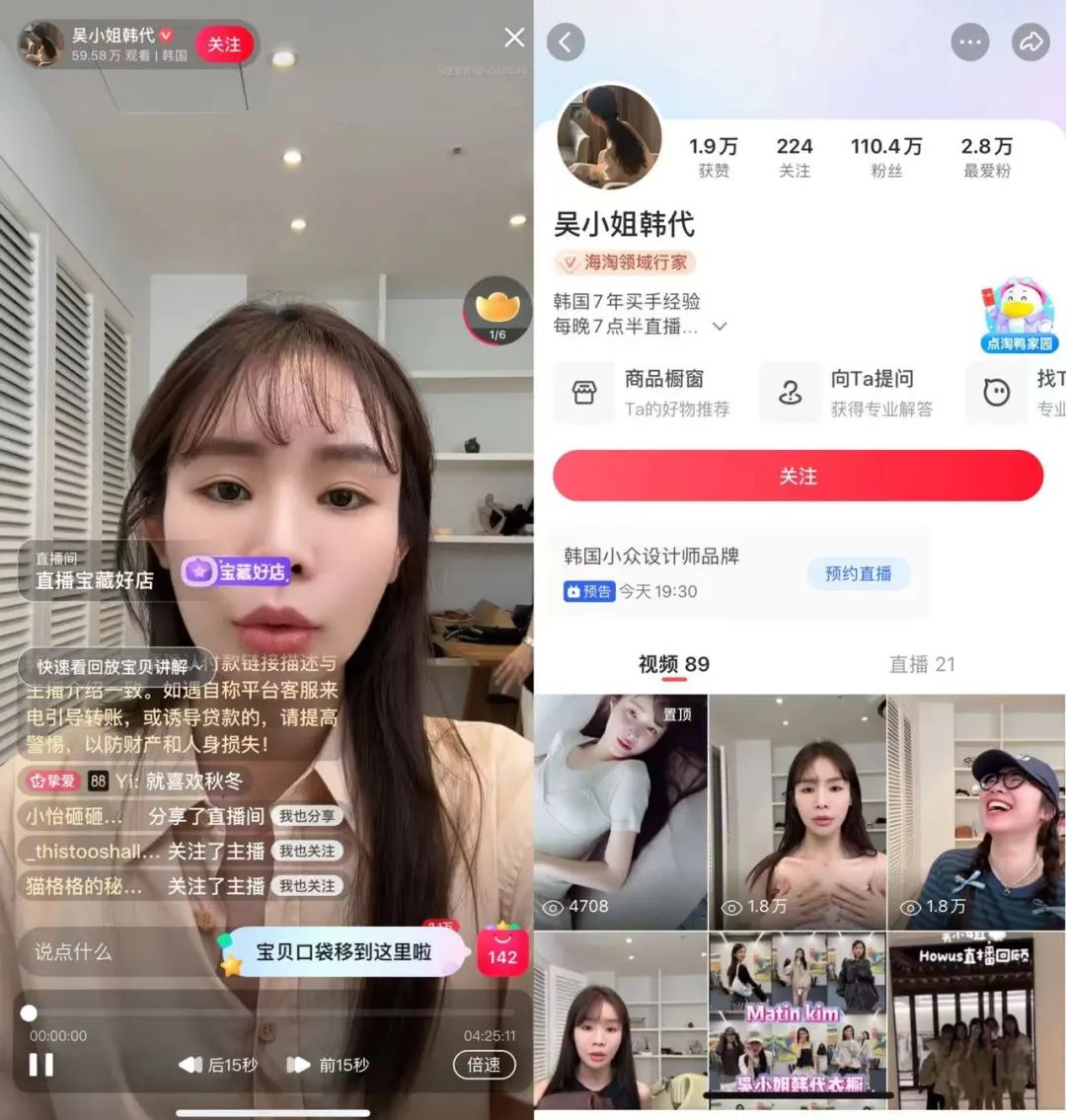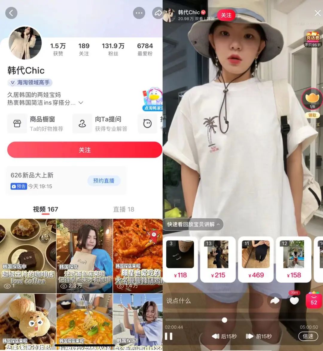 另一個(gè)很有趣的例子是“韓代chic”,他們很像在家里直播,整個(gè)直播沒(méi)有鮮明的節(jié)奏感。