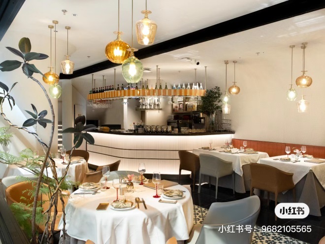 首店從外圍來看是花園小洋樓設(shè)計,外墻以白色為主色調(diào),黑色門框做裝飾。走進內(nèi)部,白色花團錦簇樣式的吊燈為門店增加一絲優(yōu)雅,與隨處可見的綠植、整齊擺放的白色餐布相稱,整體簡單大氣,更貼近新加坡這座花園城市摩登成熟的氣質(zhì)。