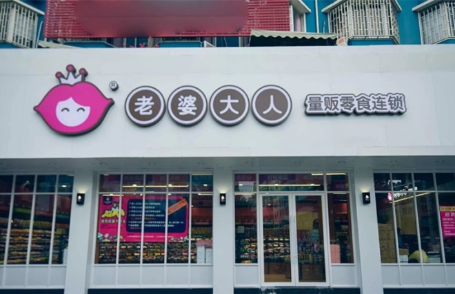 據(jù)越牛新聞報(bào)道,目前,上述兩家老婆大人門店已將門頭改為“大庫零食”。