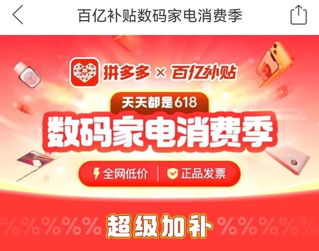 京東百億補貼上線一個月后,拼多多百億補貼啟動“數(shù)碼家電消費季”,首季在百億補貼的基礎(chǔ)上再次投入10億真金白銀,對消費者需求強烈的數(shù)碼家電全品類進行額外補貼。