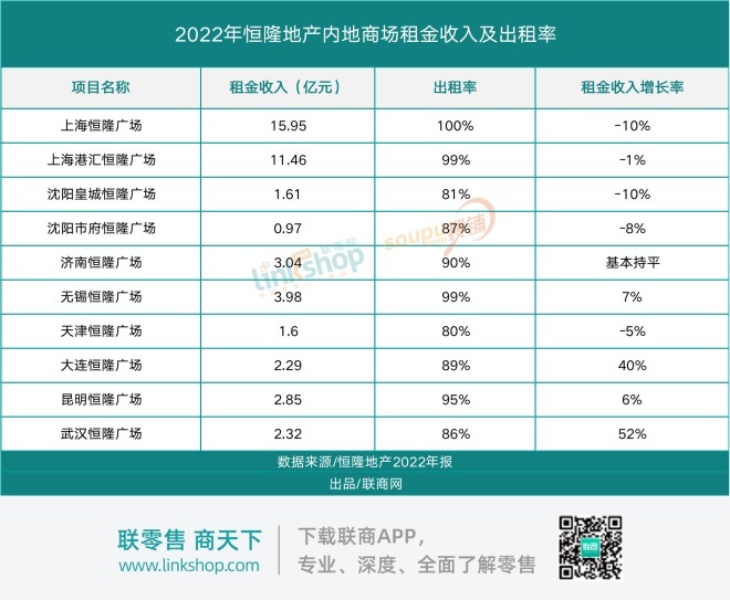 上海恒隆廣場和港匯恒隆廣場雖然租金收入同比有所下滑,但仍然是恒隆系里面租金收入最高的商場。