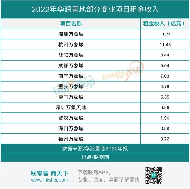 其中11個代表性購物中心深圳萬象天地、成都萬象城、深圳萬象城、杭州萬象城、沈陽萬象城、南寧萬象城、重慶萬象城、廈門萬象城、福州萬象城、?谌f象城、武漢萬象城的2022年總計租金收入為64.82億元。