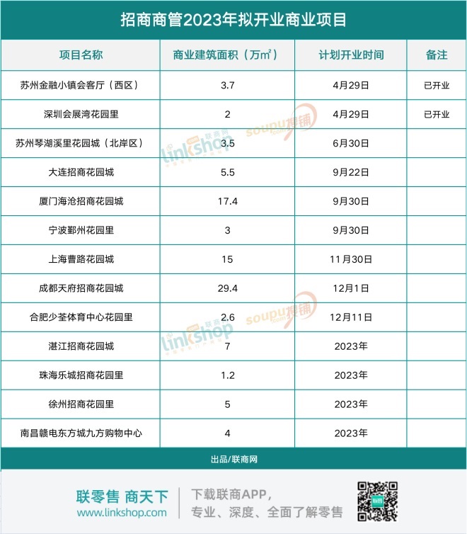2023年,招商商管計劃新開13個商業(yè)項目,主要以花園城和花園里產(chǎn)品為主。諸如上海曹路招商花園城、廈門海滄招商花園城、成都天府招商花園城等項目備受關注。