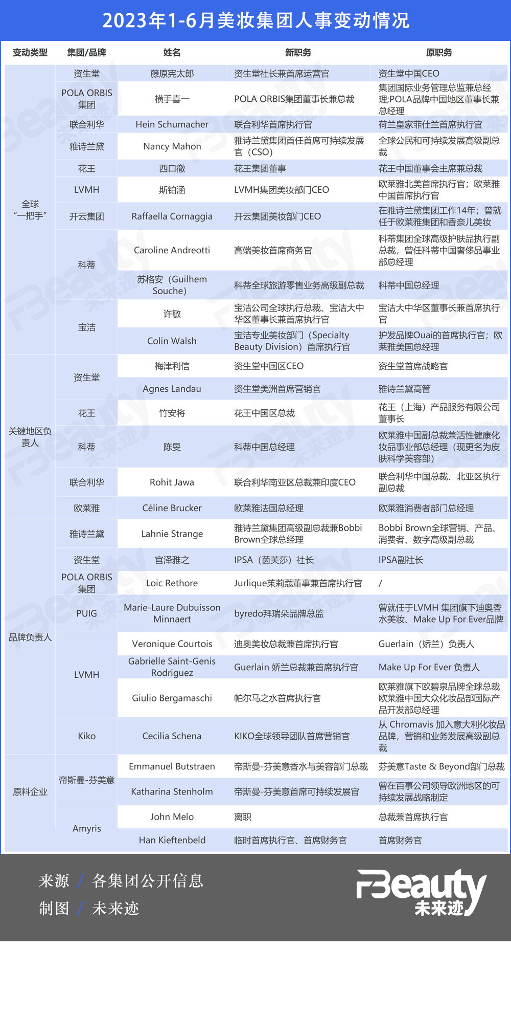 今年前6個(gè)月,資生堂、POLA ORBIS集團(tuán)、花王集團(tuán)、科蒂、LVMH以及聯(lián)合利華集團(tuán)等,新的全球負(fù)責(zé)人和重要地區(qū)的負(fù)責(zé)人正式接任。