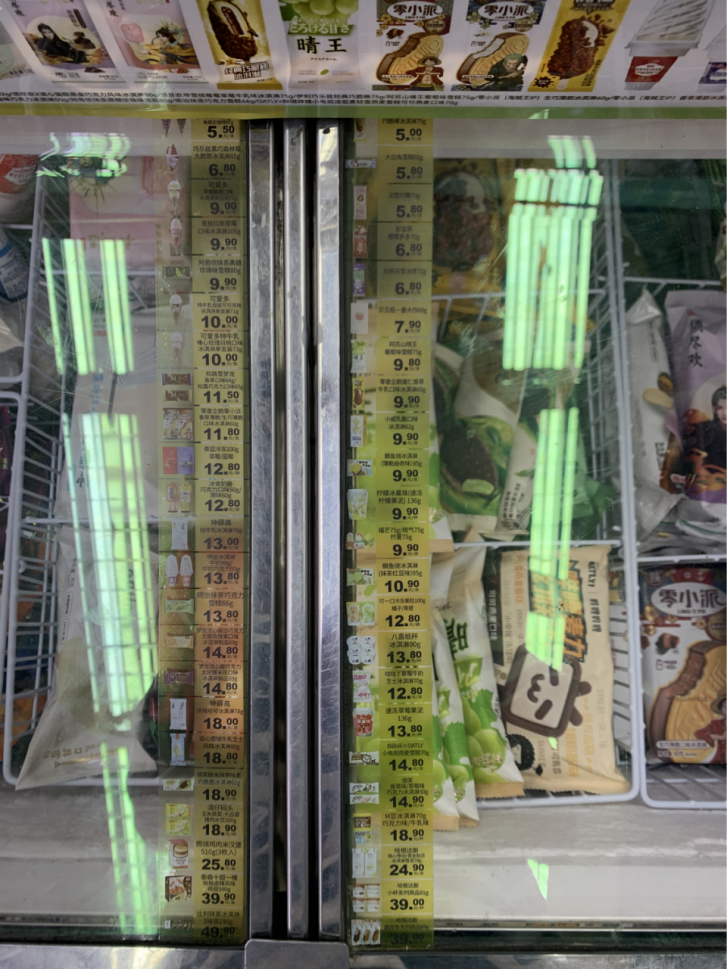 但是也有部分社區(qū)便利店并未明碼標(biāo)價。在被問及原因時,老板稱是因為“太費事”,“老客戶都知道價格,而且雪糕種類經(jīng)常調(diào)整,所以懶得寫價格。”