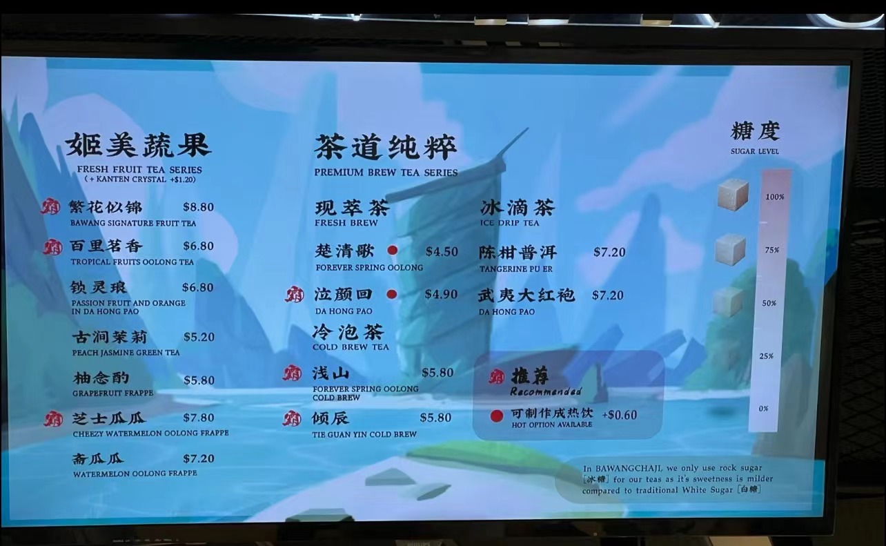 價(jià)格方面,不同國(guó)家之間差異較大。以霸王茶姬為例,據(jù)微信小程序顯示,發(fā)達(dá)國(guó)家新加坡地區(qū)的霸王茶姬一杯飲品價(jià)格大多在4-8新加坡幣,折合人民幣約21-42元,總體定價(jià)相較國(guó)內(nèi)偏高。而在泰國(guó)曼谷,霸王茶姬的定價(jià)區(qū)間則在80-150泰銖,折合人民幣約16-30元,總體定價(jià)與國(guó)內(nèi)持平。