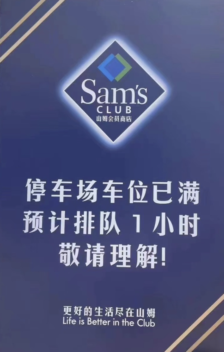有山姆會員的消費者告訴時代周報記者,因為今天是工作日,所以過來看一看有沒有開業(yè)活動,誰知道一直在排隊。另外一位消費者向時代周報記者透露,自己準備要去門店的路上,堵在半路只好掉頭。