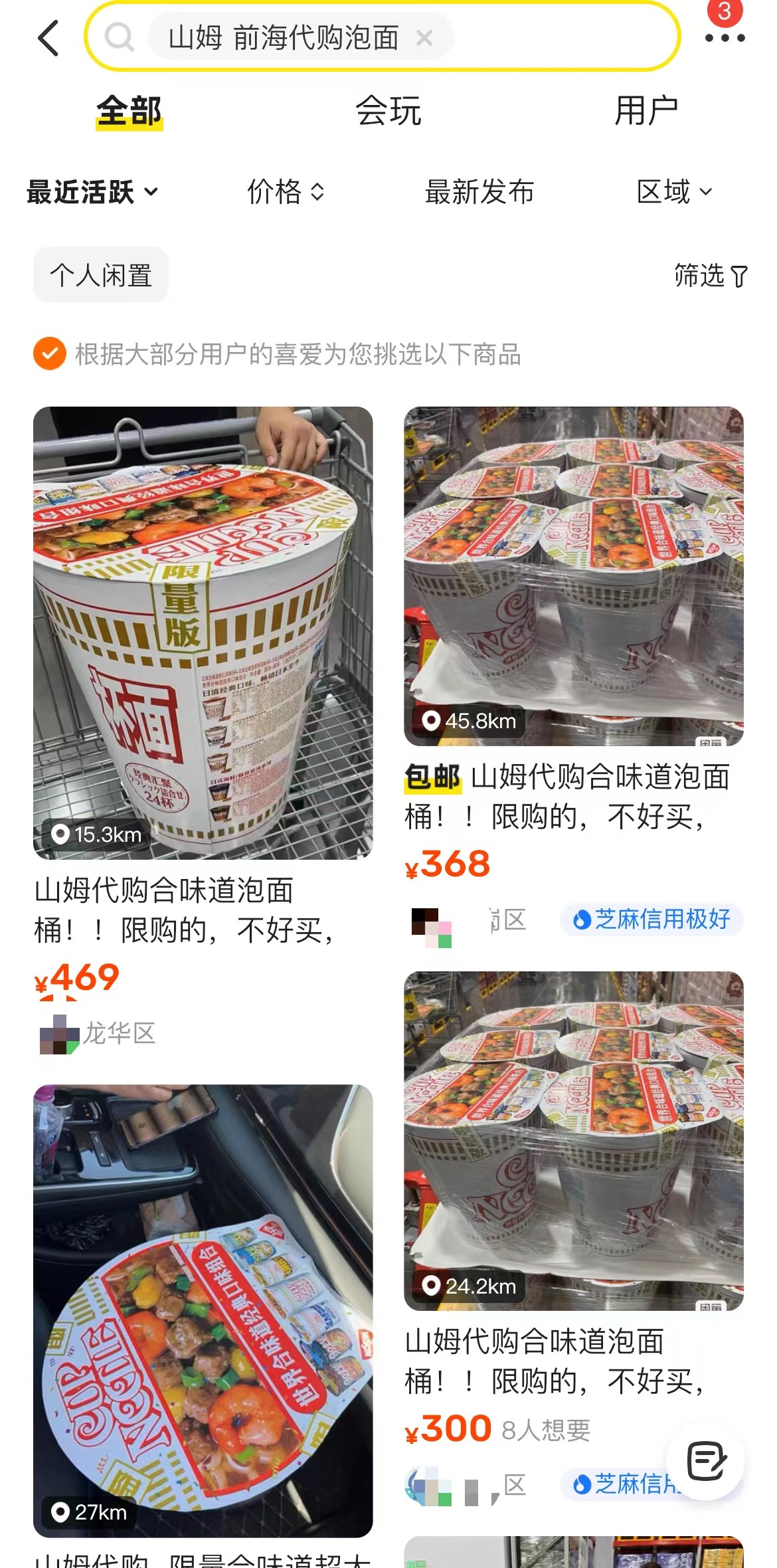 在閑魚平臺,這款售價168元的巨大杯面桶,被黃牛炒至300—500元,基本近乎翻倍,仍供不應求。有黃牛直言:“一口價500元,不包郵不議價,限購不好買,誰先拍給誰!