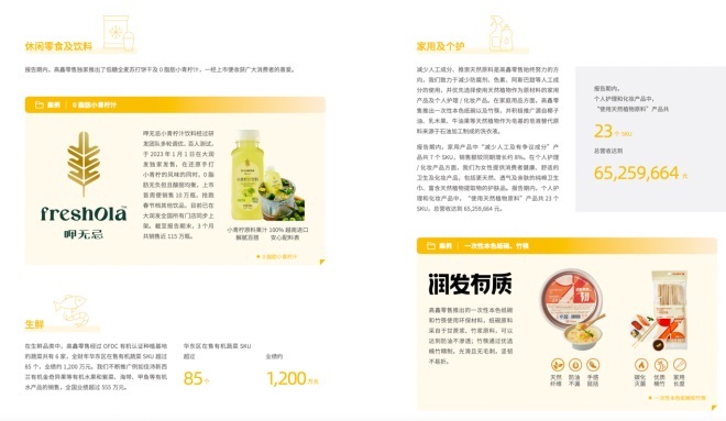 同時,高鑫也積極推動動物福利商品的引進(jìn),逐步推進(jìn)動物福利意識的傳播。報告期內(nèi),高鑫引入6款非籠養(yǎng)動物福利蛋新品,引導(dǎo)消費者支持動物福利,倡導(dǎo)動物福利的新消費理念。