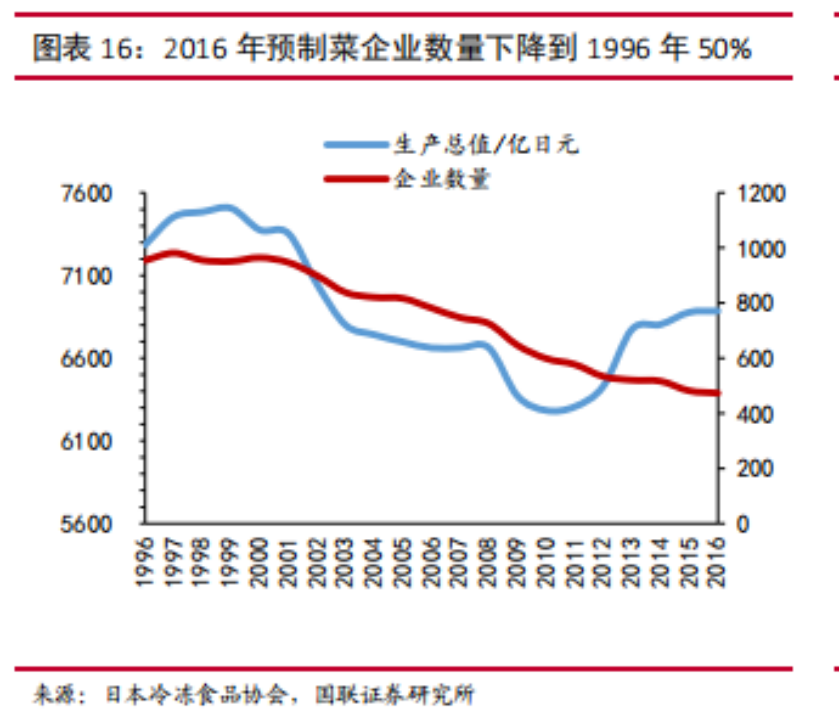 據(jù)日本冷凍食品協(xié)會數(shù)據(jù),企業(yè)數(shù)量從1996年的959家,下降到2016年的476家,降幅竟達(dá)到50%。