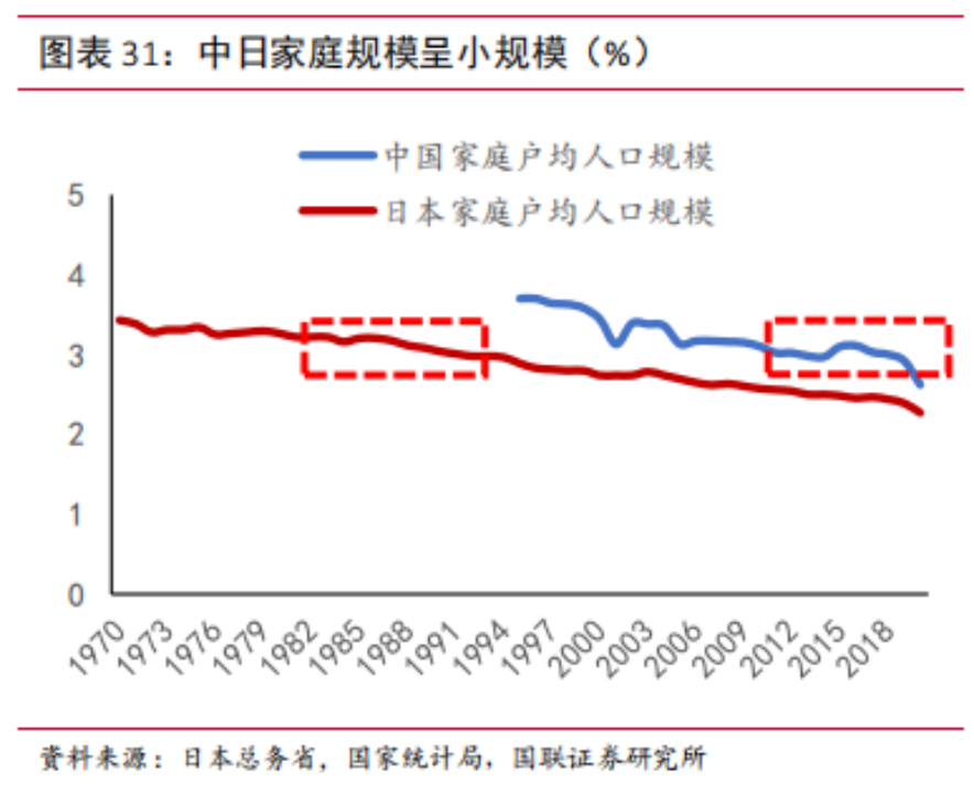 像是日本平均每戶規(guī)模從1970年的3.4人/戶,下降到1990年的2.99人/戶。中國的家庭規(guī)模也從2000年的3.44人/戶,下降到2000年的2.62人/戶。