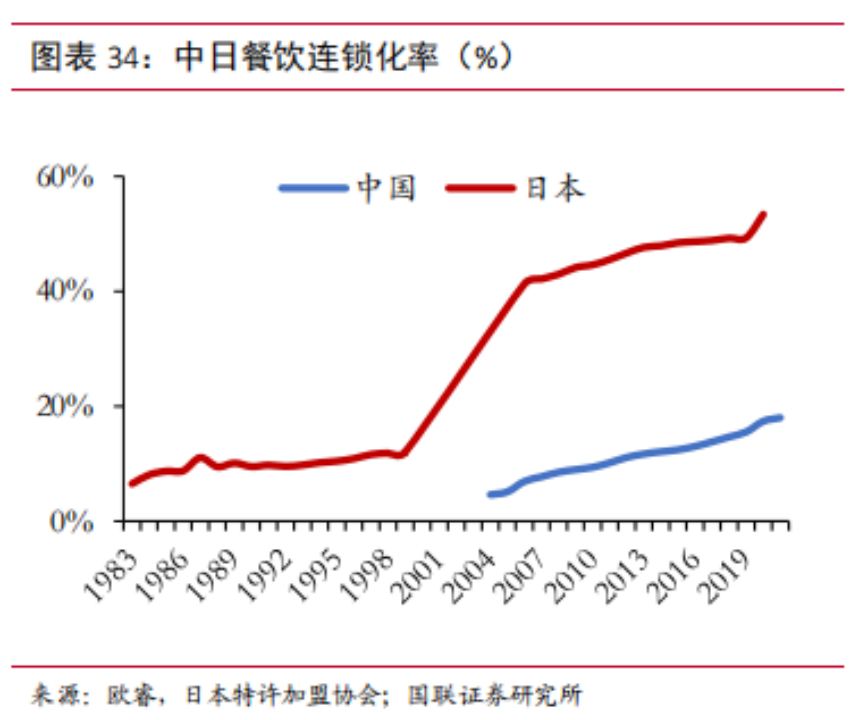 直到2001年至2011年時,由于通貨緊縮、瘋牛病,消費者外出就餐比例被動下降。