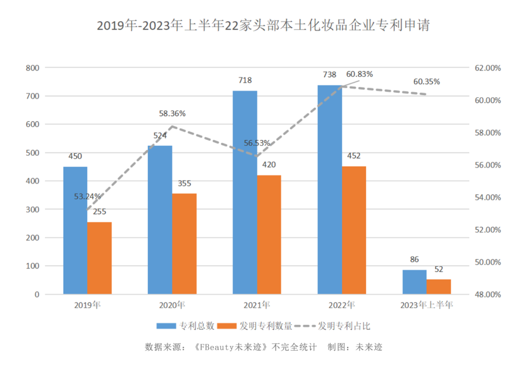 2023年前6個月,本土化妝品企業(yè)的專利數(shù)量大幅下滑!