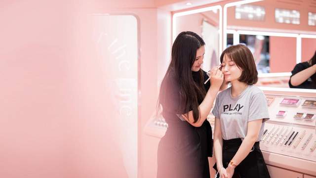 此外,3CE還聯(lián)動(dòng)線上線下場景,進(jìn)一步深化用戶服務(wù)體驗(yàn)。3CE聯(lián)合品牌大使虞書欣,在抖音發(fā)布了“熱門試色合集”、“明星同款?yuàn)y容”、“自帶氛圍感妝容”等種草視頻,放大妝造影響力;線下,3CE則為會(huì)員打造了沉浸式試妝空間,通過提供品牌全系列爆款單品和化妝鏡,會(huì)員能夠直接體驗(yàn)線上種草的妝造風(fēng)格。