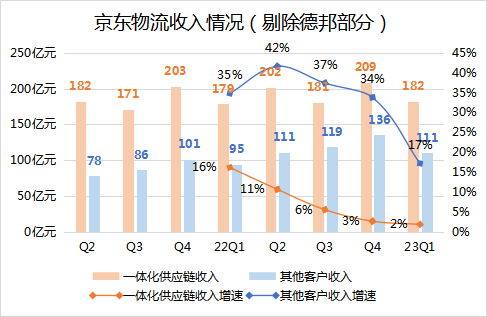 并購德邦,直接帶動“其他客戶”收入增長。由于德邦的主營業(yè)務為快運,背后的大客戶為商家——京東并購德邦等于花錢買客戶。