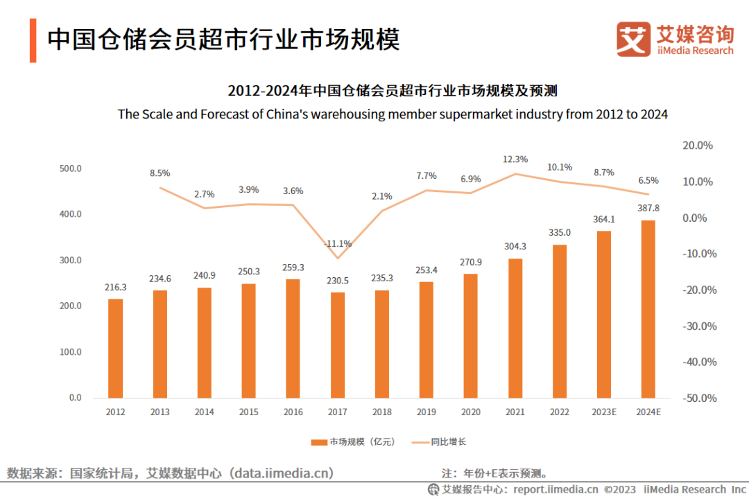 倉儲(chǔ)會(huì)員超市市場規(guī)模 圖源:艾媒咨詢