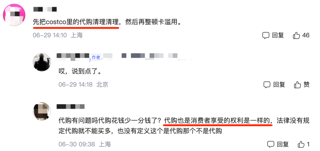至于Costco嚴(yán)打共享會(huì)員卡的行為,一網(wǎng)友銳評“先把代購清理清理,然后再整頓卡濫用!