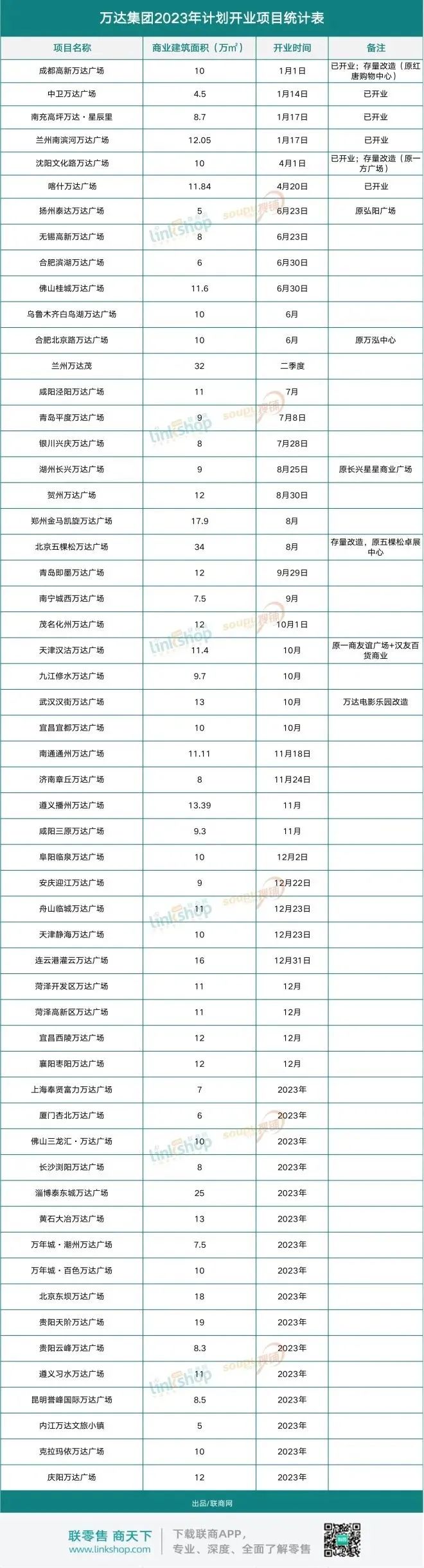 ▲萬達2023年計劃新開項目一覽