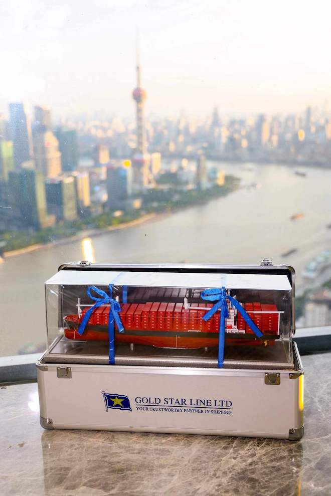 ▲自2003年入駐上海來福士廣場至今,以星綜合航運(中國)贈送輪船模型