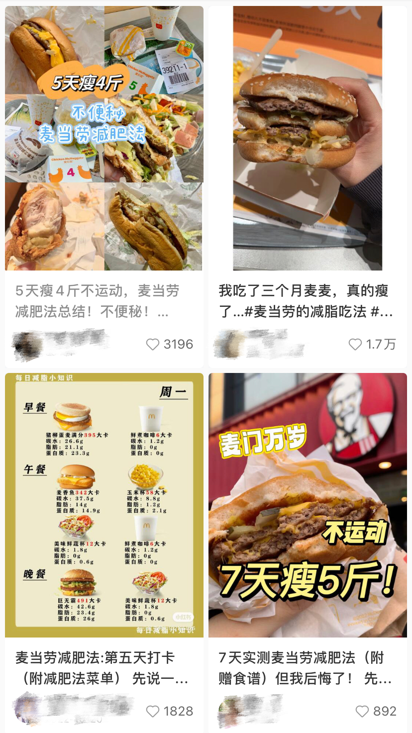麥當(dāng)勞的窮鬼套餐是減脂最優(yōu)選,“只要去掉漢堡的醬,怎么不算是高蛋白高纖維的健康食物”?在社交媒體上,麥門減肥法已然發(fā)展出一群忠實(shí)信徒,小紅書相關(guān)詞條超過(guò)540萬(wàn)瀏覽。