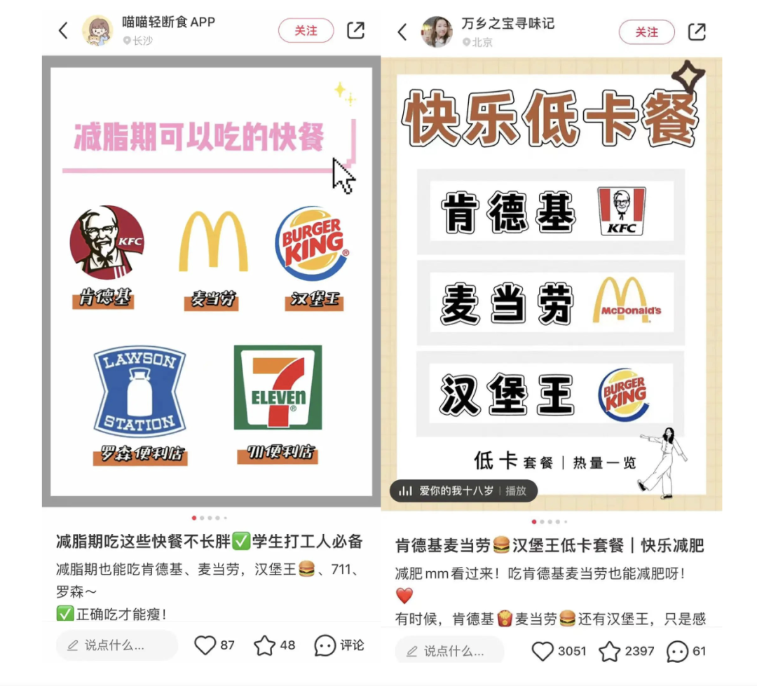 除此之外,肯德基、沙縣、窯雞王,甚至連士力架和奶茶都被奉上了減肥美食的寶座,主打一個(gè)只有你想不到,沒(méi)有減肥博主不敢說(shuō)的。