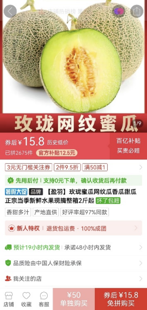 一片蜜瓜138元,拼多多同款每斤不到4元