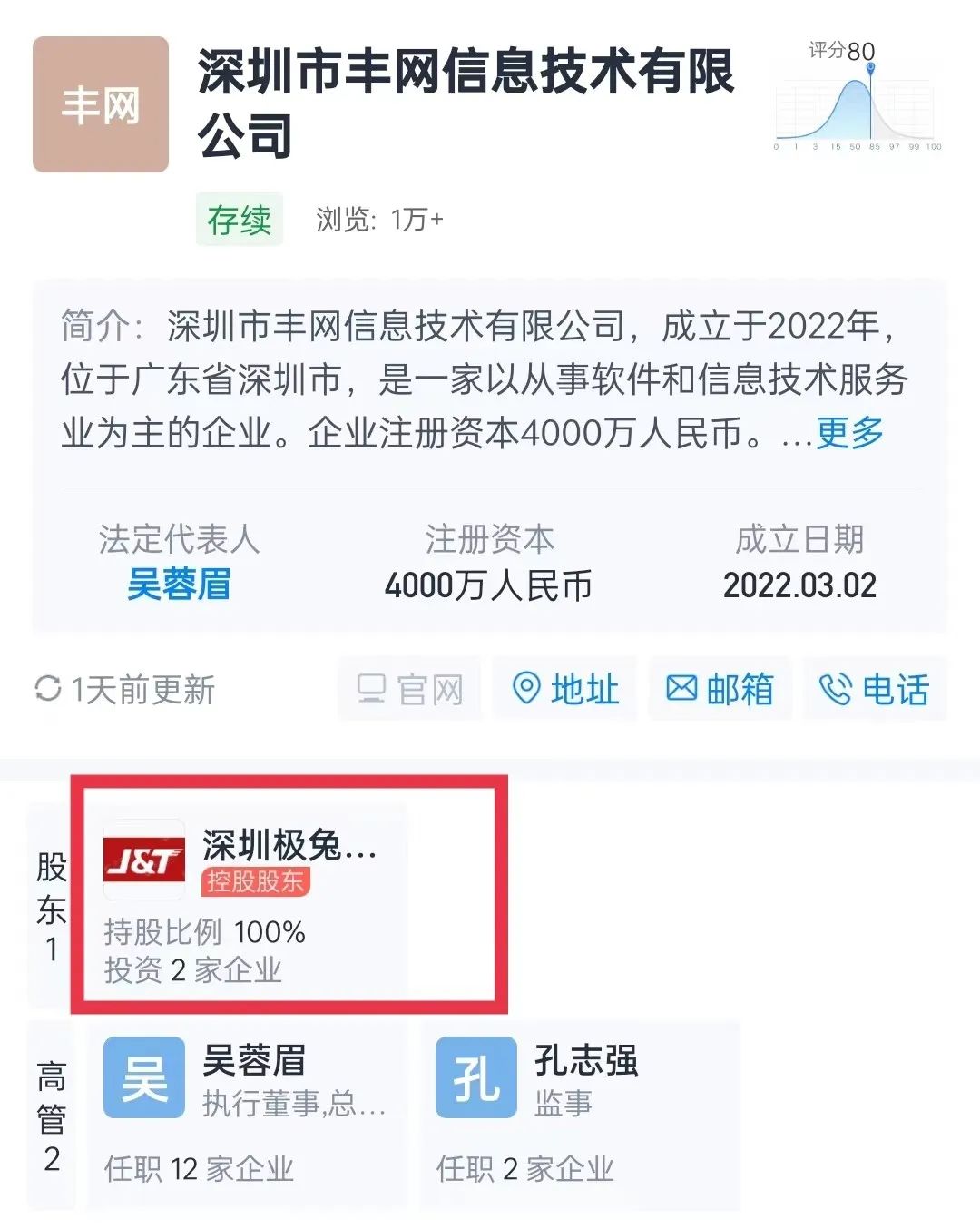 順豐旗下深圳市豐網(wǎng)控股有限公司退出股東,新增極兔速遞旗下深圳極兔供應(yīng)鏈有限公司為股東并全資持股,同時公司主要人員也均發(fā)生變更。