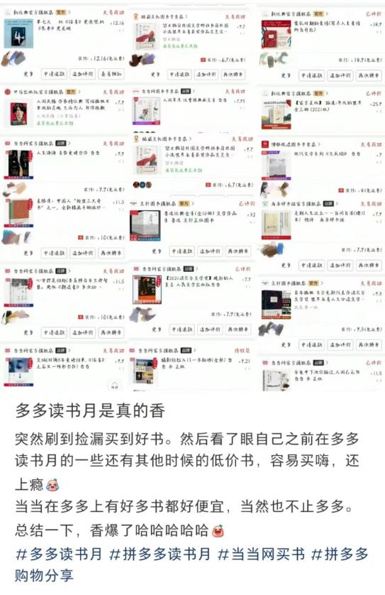 也有很多平臺為大學(xué)生群體推出更加細(xì)分的優(yōu)惠活動,從產(chǎn)品到時(shí)間都更符合學(xué)生黨的消費(fèi)節(jié)奏。比如拼多多推出的“多多讀書月”,吸引了消費(fèi)者下單圖書!伴_學(xué)季滿100-50”、“超級星期五”也都是拼多多推出的限時(shí)優(yōu)惠活動。