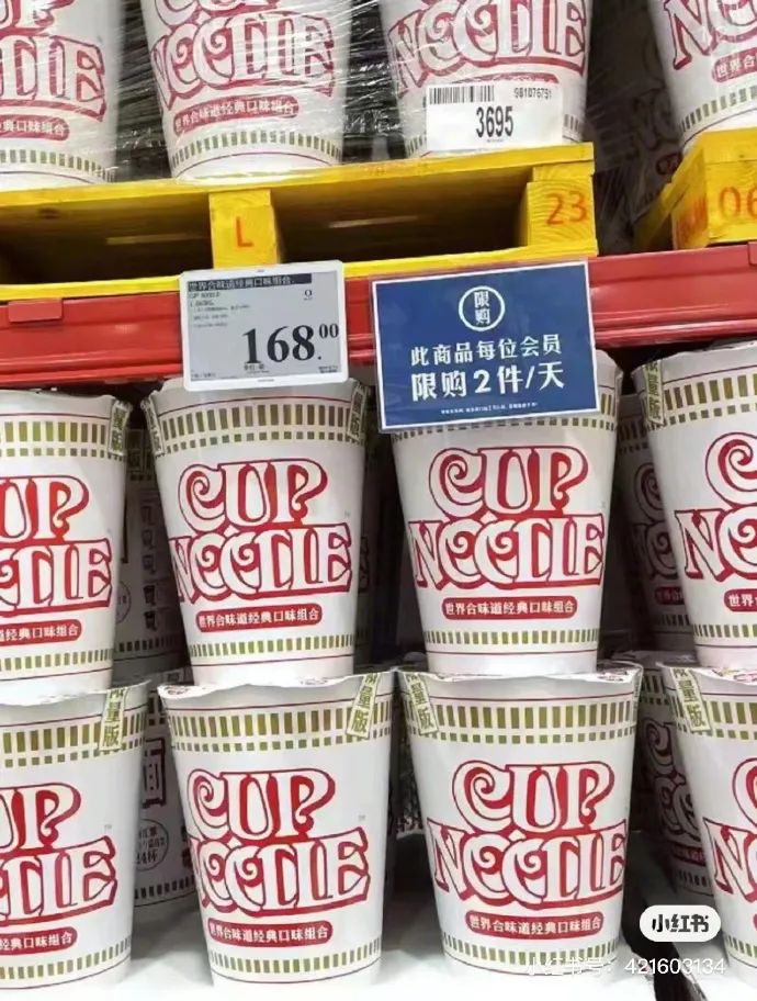每人限購(gòu)兩件,面對(duì)限量版的泡面,山姆超市的中產(chǎn)階級(jí)并不會(huì)在意單桶是否貴了2塊錢(qián),還是配合的給巨型泡面桶買(mǎi)了單。