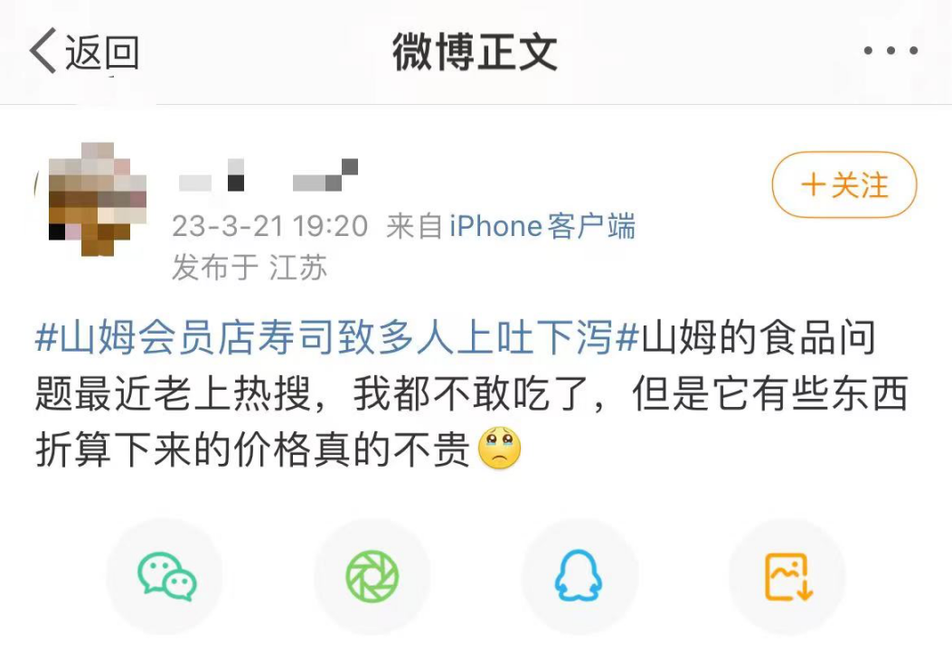 就山姆之前的壽司事件,很多人吃了之后上吐下瀉,有網(wǎng)友就熱搜評(píng)論:“山姆的食品問(wèn)題最近老上熱搜,我都不敢吃了。”