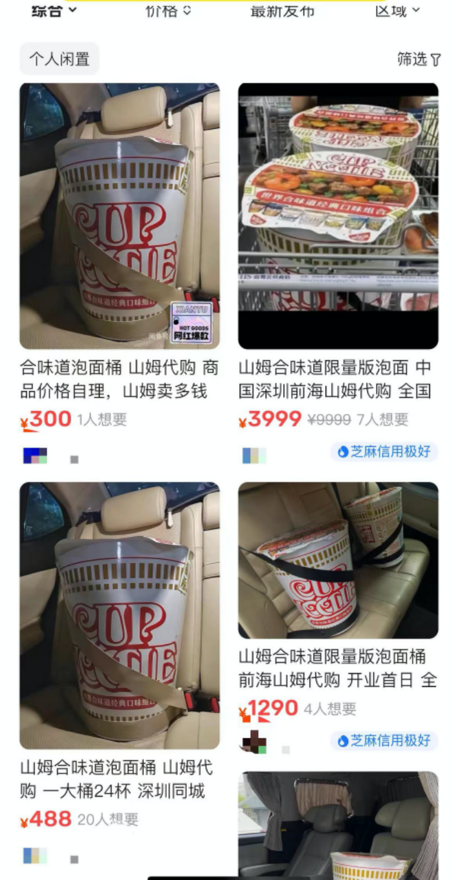 在閑魚(yú)上,這款泡面已經(jīng)賣(mài)到300元、500元、1290元,甚至有人標(biāo)價(jià)3999元。