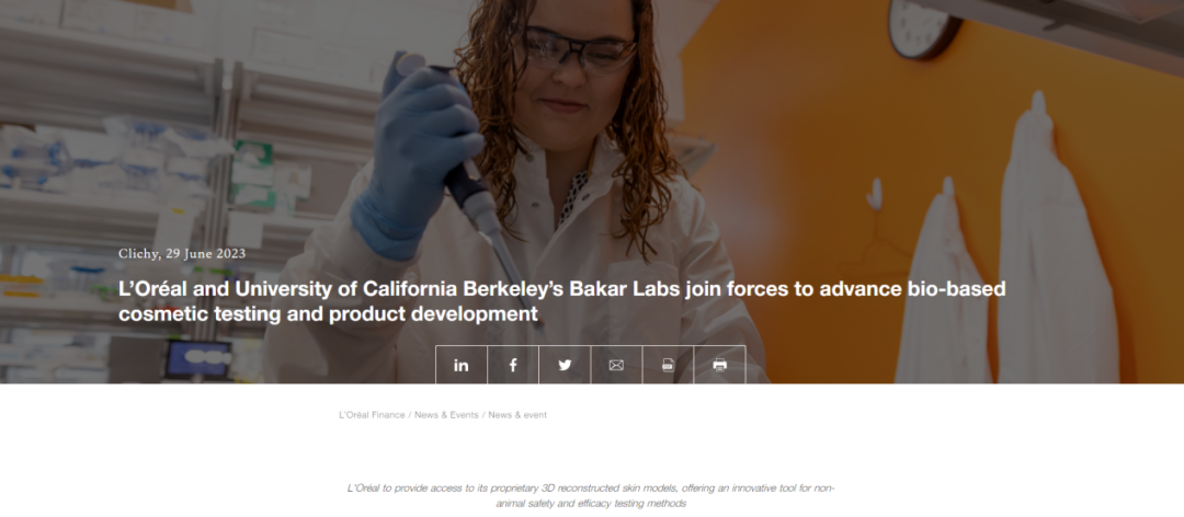 3天后,歐萊雅又在其官網(wǎng)宣布,已與加州大學(xué)伯克利分校Bakar實驗室達成合作,將攜手推進生物基成分化妝品的產(chǎn)品開發(fā)和測試。據(jù)悉,雙方合作的重點在于利用歐萊雅的微生物科學(xué)技術(shù)和Bakar實驗室的生物技術(shù)專業(yè)知識,以此開拓下一代的美容產(chǎn)品。