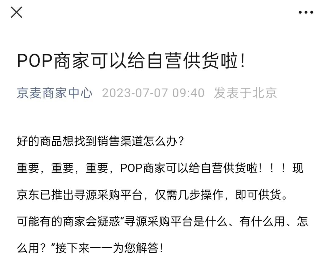 正如京麥商家中心給“尋源采購平臺”樹立的價值:“好的商品想找到銷售渠道”。對于第三方賣家而言,即使平臺給予的扶持再多,京東自營自帶的“隱性流量”,也決定了其始終是京東最重要的銷售渠道。