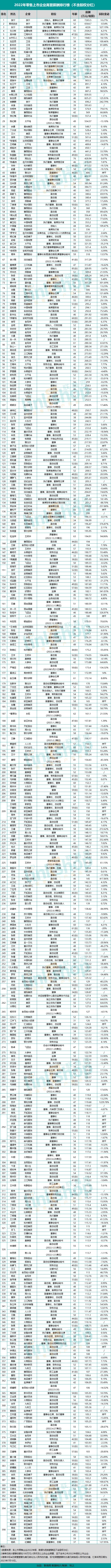 2022年零售上市企業(yè)高管薪酬榜:最高超7200萬