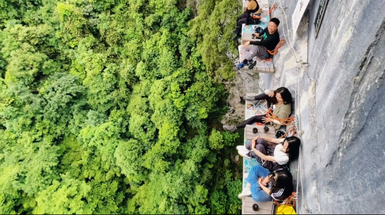 坐在懸崖邊喝咖啡,圖片源自懸崖咖啡館主理人視頻號截圖@鵬哥組局