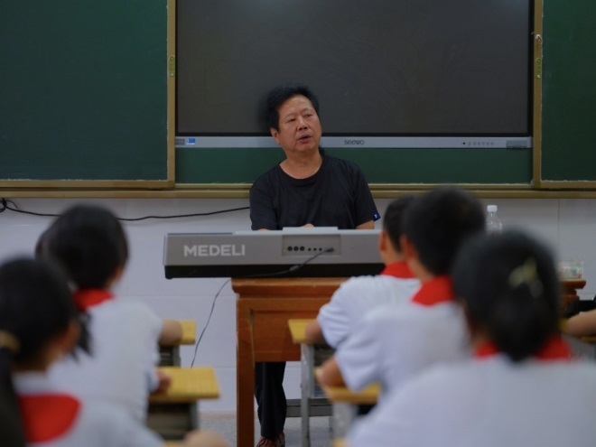 “教小孩我會(huì)講得趣味一點(diǎn),讓他們對音樂有所了解。我覺得要先開發(fā)他們,讓他們感覺到音樂是很有意義的事情,而不是可有可無的東西!标惽罢f。在這班孩子中,他發(fā)現(xiàn)了一個(gè)音準(zhǔn)、音色和樂感很好的同學(xué),只是學(xué)校限于條件,在藝術(shù)教育方面比較薄弱,沒能給孩子更好的提升機(jī)會(huì)。